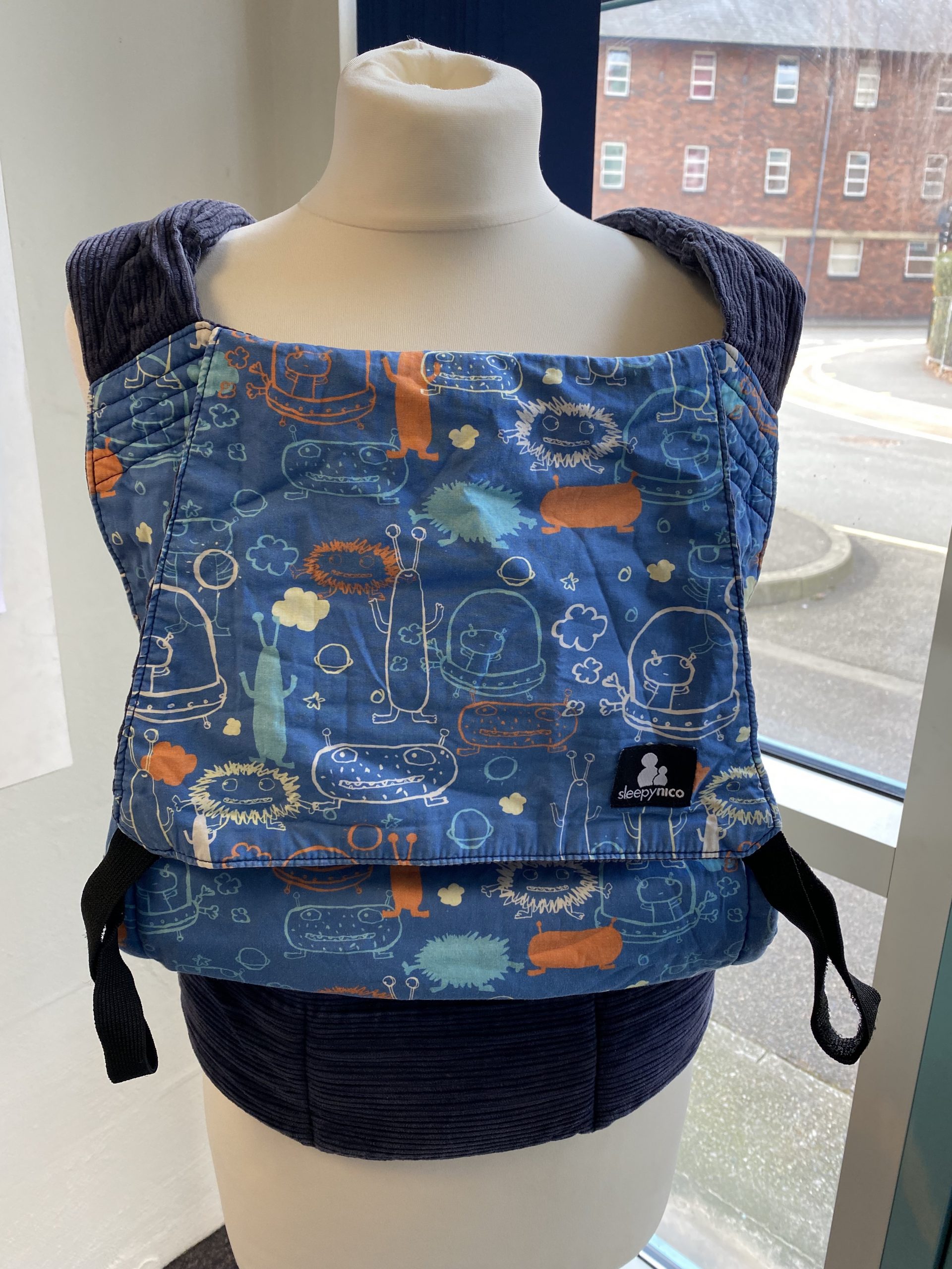 The Sleepy Nico carrier is one of the most beloved carriers among Sheffield parents; the combination of the cheery prints, the soft cord, the gentle flexible padding, the comfort and flexibility for carrying with cross or rucksack style straps.